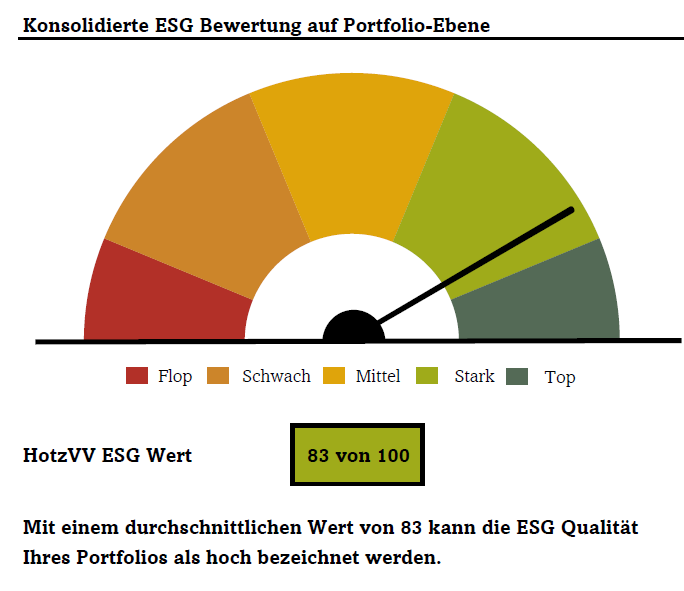 Der HotzVV ESG-Wert ergibt sich aus dem Durchschnitt der einzelnen Werte. Der Wert betragt per 30.06.2025: