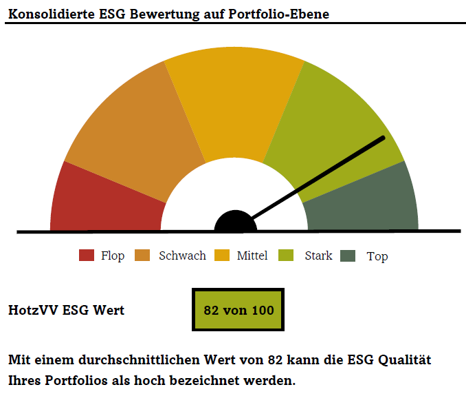 Der HotzVV ESG-Wert ergibt sich aus dem Durchschnitt der einzelnen Werte. Der Wert betragt per 31.12.2025: